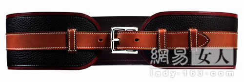 这款宽皮带是受马鞍皮带的直接启发而设计的,将Hermès马具的三种从色调到手感都不一样的皮革叠置起来,做成了这款独特的紧身皮带。