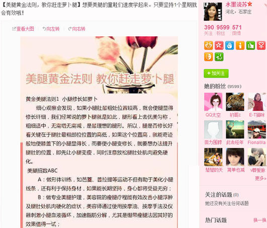 如花是个以减肥为终生事业的胖妞,如花的口号是“如果我减去50斤,我就是人见人爱貌美如花!~期待姐妹们私信/@如花,一起推荐各种减肥法。PS:点击加关注,不会导致怀孕。”有着同样减肥烦恼,或者成功减肥的美眉们,赶紧和如花一起分享减肥的心得吧!