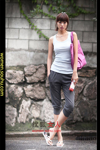 时尚解析:棉质材质的束裤十分的带有运动气质,灰色的色彩带出美国风气息的运动感和时尚辛辣感!美式街头感十足,完美的比例露出小腿的曲线,搭配基本款小背心,时尚又具有运动气息。