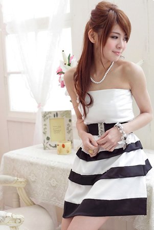 黑白双色使得设计款式让这款小黑裙变得十分的与众不同。高腰线拉长下神视觉效果!领口部位的柳丁装饰独特,也能减龄变年轻。