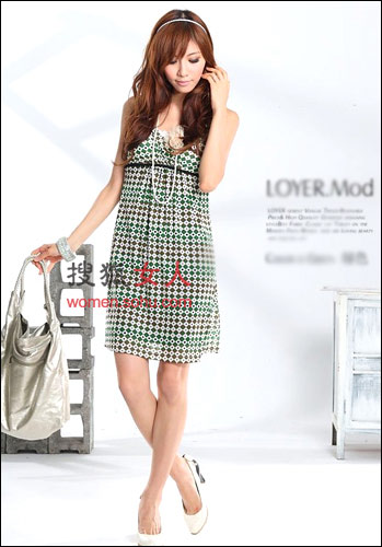 搭配建议:性感的V领吊带裙,配以规则的几何图案,通过颜色的变化,增加层次感,给人留下性感、俏皮的印象。