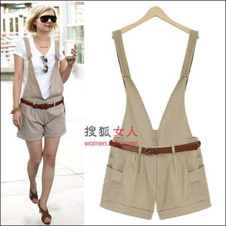 时尚解析:收紧的臀部设计、松版的裤脚、腰间的系腰带装饰以及背带的样式,都是裤装的时髦要素,内搭的TEE上身不要太松垮,加上一双简洁交叉皮条小跟鞋更有美感。上班、度假、逛街、聚会,这样的装扮穿去哪里都合适。