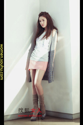 时尚解析:针织外衫给人淑女味,青春装扮与她的气质非常搭,灰色的针织外衫给人甜美的淑女味,粉色短裙与白T恤、长腿袜等一切所有年轻态的单品都给人甜美感觉。