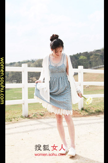 连衣裙搭薄开衫 本季清新田园风