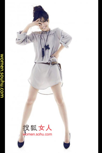 时尚解析:雪纺连衣裙,这么热门的流行元素不可错过,领子的精巧设计修饰Vicki不够完美的肩部线条,腰带很重要,分割比例显出曲线就靠它。