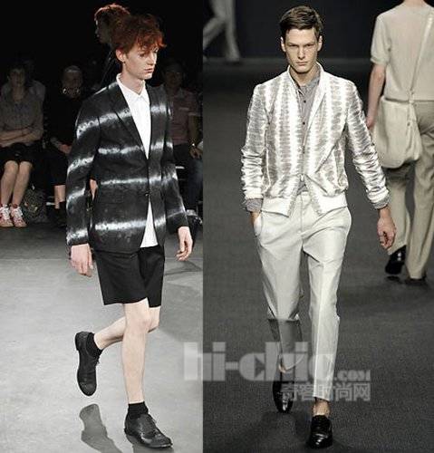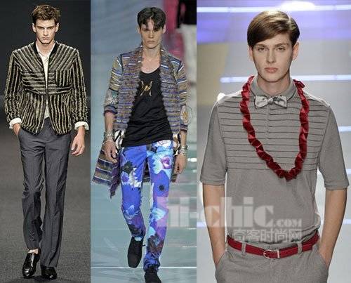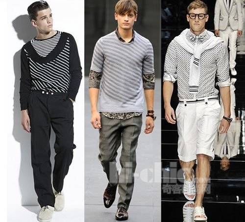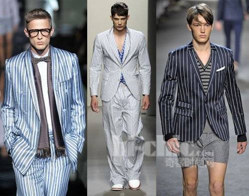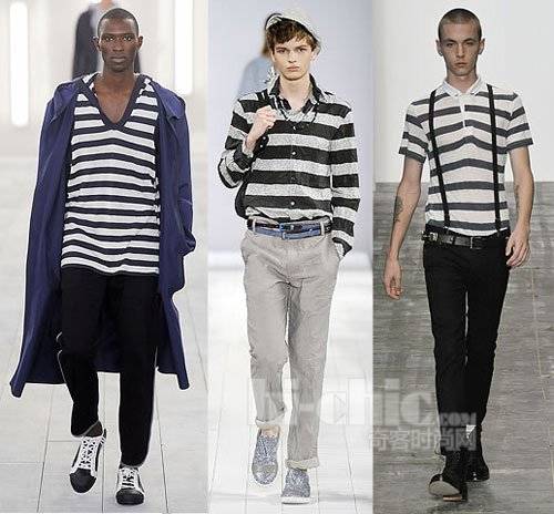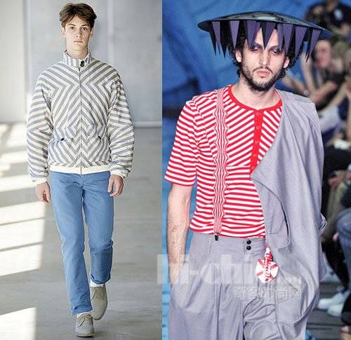 条纹作为简单明确的图案也好符号也罢,在服装历史中已经走过了很长时间,如今,也成为极其普遍的元素在各式服装中穿行。横条、竖条、斜条、等距条纹、不等距条纹、双色条纹、多色条纹,再加上各种条纹的混搭,可以说如今的服装上,条纹正肆无忌惮着。充满梦想的海魂衫、温馨备至的睡衣裤、风趣诙谐的囚犯衣、色彩绚丽的彩虹衫,2009年春夏的男士有了更多的选择。