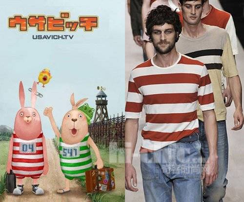 藏青色和白色相间的横向条纹,让人联想到典型的囚服图样,而或许是受到《越狱兔》中的滑稽形象影响,产生一种秩序中的幽默感。