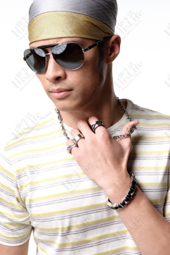 项链、手链、戒指,各种粗重的金属配饰和T恤的组合,能够搭配出迷人的摇滚风味。配合紧致的帽子或头巾,时尚指数倍增。即使是款式最基础的T恤和牛仔裤,也照样不会显得平庸。