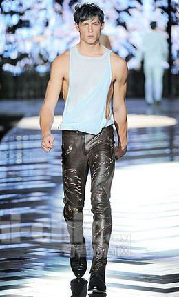 除了“抹胸装”,本季的潮流男装还有不少伟大的发明,比如“围嘴装”,看来设计师不光想让男人更“女人”,还想让男人看起来更“小孩”,或者说,更婴儿。无论是Cavalli老先生为3-5岁幼童专门定制的围嘴背心,还是Prada改良之后还是像擦嘴布的“擦嘴布”,亦或是NeilBarrett强大的无袖围裙装,当男模们一身的腱子肉喷薄而出,直看得人心惊肉跳,哪还有美感可言?