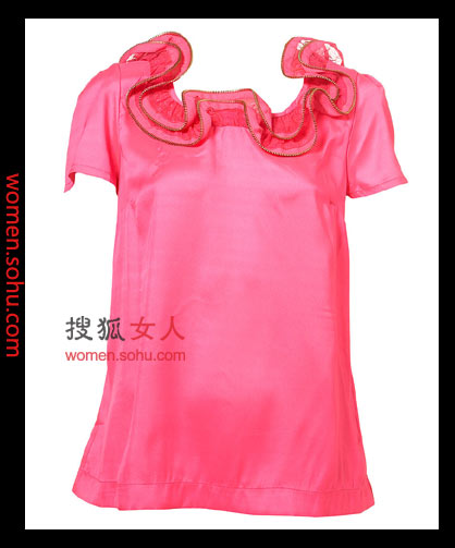时尚解析:粉色公主袖荷叶领T恤,色彩好像夏日里的草莓冰淇淋,同样在搭配上腰带是不可或缺的,与领口的细节设计相呼应,搭配白色打底裤,草莓奶油冰激凌呈现。