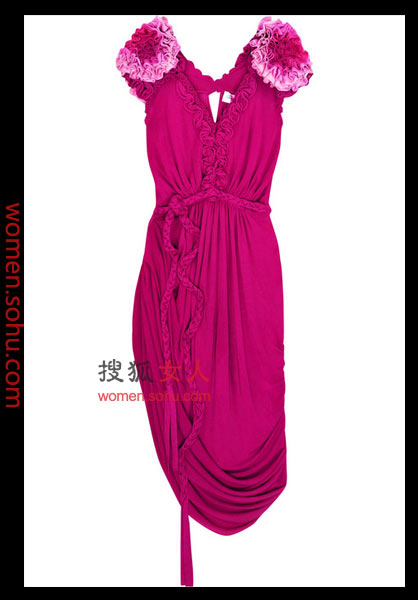 时尚解析:将怀旧罗马款式融入连衣裙的设计,轻薄细腻的织物作为袖拢的装饰,能产生飘逸柔美的感觉。腰部宽窄腰带的束腰设计更是尤为令人注目,能有效掩饰腰部的曲线,显得优雅动人。