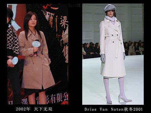 可能是怕穿错衣吧,干脆罩一件大牌风衣,可是效果也不怎么样