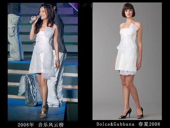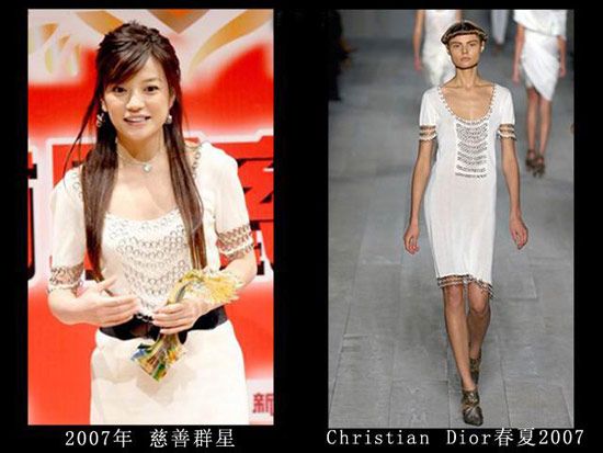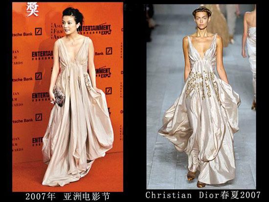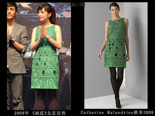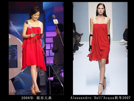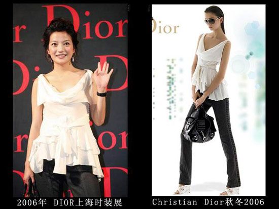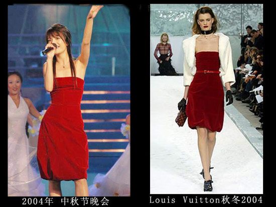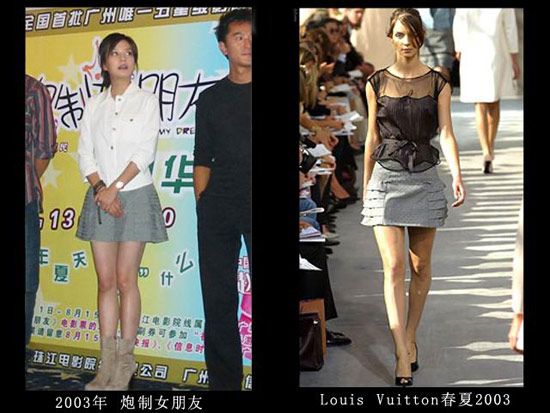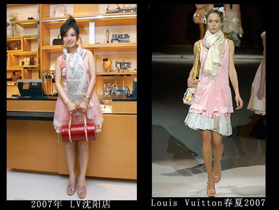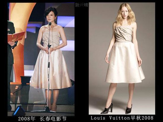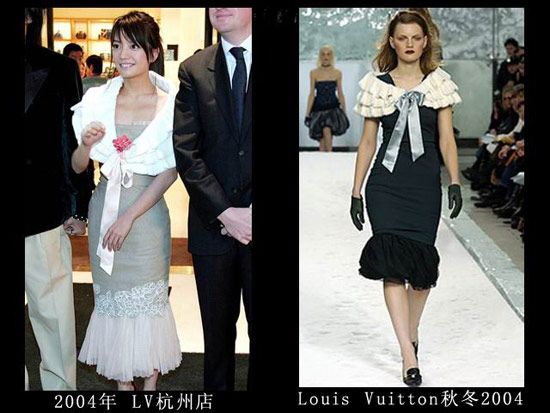 LV店的开幕仪式上肯定是不能穿假货,但是这身衣服真的很像山寨的,那时的赵薇对于大牌的驾驭力还不够