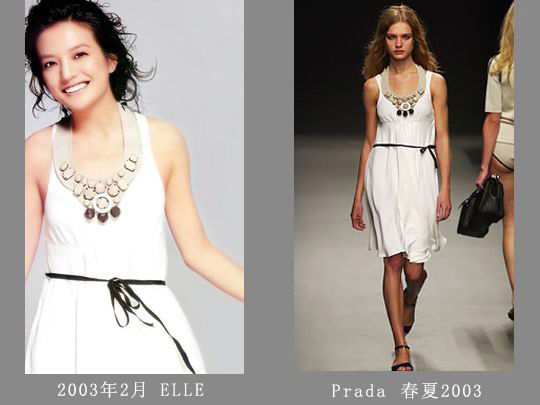 赵薇加了一件白色抹胸很符合她当时的形象,却穿不出大牌的感觉