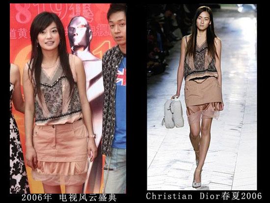 裙子是大牌没错,上衣是不是不敢肯定,因为穿出来的效果极差,像是刚进城的学生妹