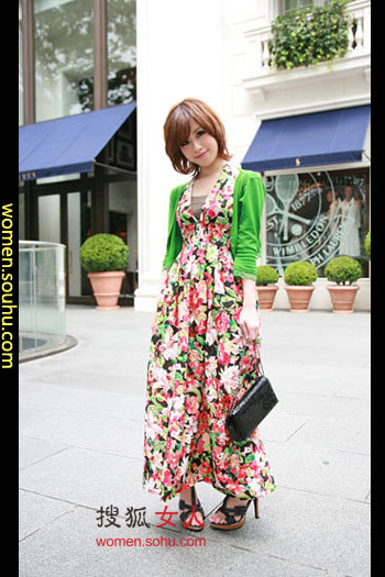 时尚解析:印花、深V、高腰今年流行元素大拼搭,夏季流行了很久,加件小抹胸,搭件艳绿色小开衫,秋天依旧亮眼。