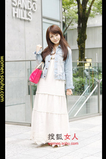时尚解析:好漂亮好清爽好干净的搭配,白色的及脚踝长裙,蕾丝边的飘逸感,使MM像仙女般纯洁,搭配蓝色牛仔小外套,保暖依旧美丽。