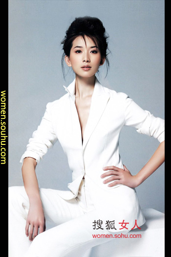 时尚解析:一身简洁干练白西装,内真空上阵,深V的领口设计,精良的剪裁,完美的修身包裹出林MM的性感身材,盘发更显高贵。