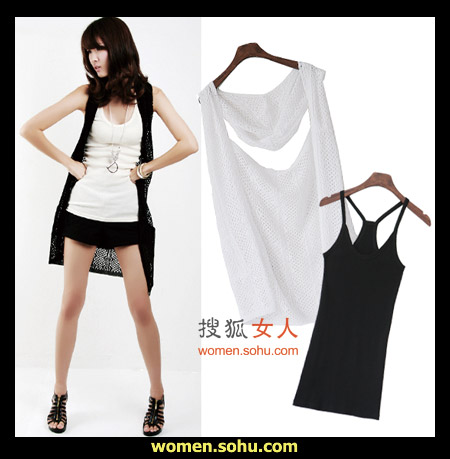 时尚解析:永恒经典的黑白搭配,基本款白色修身背心搭配黑色超短裙,加一件今秋大热的针织开衫,性感时尚挡不住。