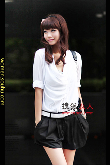 时尚解析:很有设计感的白衬衫,侧扣的领子,露出内衣边缘,不经意的流露性感气息,袖子可卷起干练帅气,可放开别样风情。