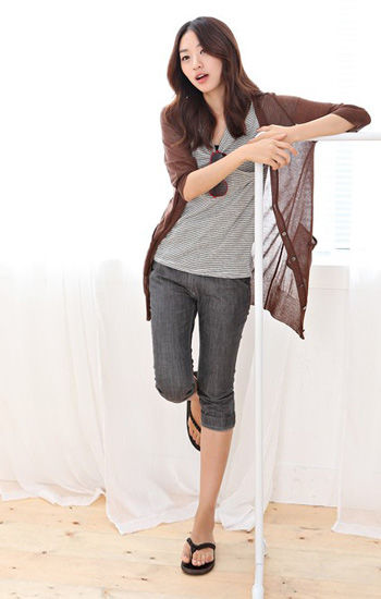 长款针织开衫是换季人手必备的单品,爱美的你可以利用它来增加搭配的层次感。内搭收身衬衫或T恤配上一款系腰带非常显瘦。也可像模特一样搭配连衣裙和凉拖鞋打造轻松惬意的装扮。