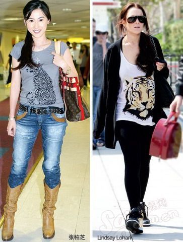 温柔女星 都爱穿猛兽图案T恤