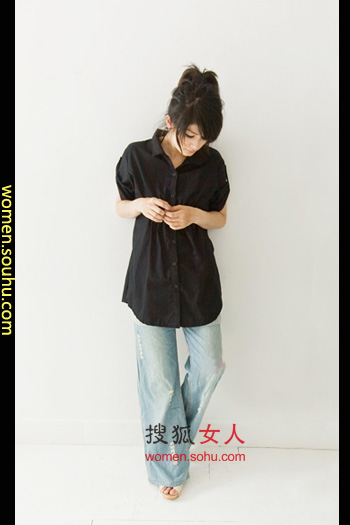 时尚解析:简单的黑色长衬衫搭配阔腿裤,简单随意,休闲气十足,扎起马尾更显干净利落,酷酷的小美眉装扮。