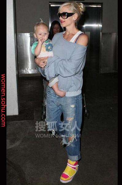 时尚解析:用一条宽松仔裤搭配斜肩的衬衫上装不仅有保留了活力感,也具备一定的保暖性。黄色褐红色相间的运动鞋是一大亮点。