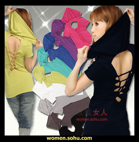 时尚解析:简单的修身T恤,加一圈蕾丝边,尽显女人味(女人味博客,女人味说吧),白色边缘可爱清纯,转过身,创意来了,大露背,藏不住的性感。