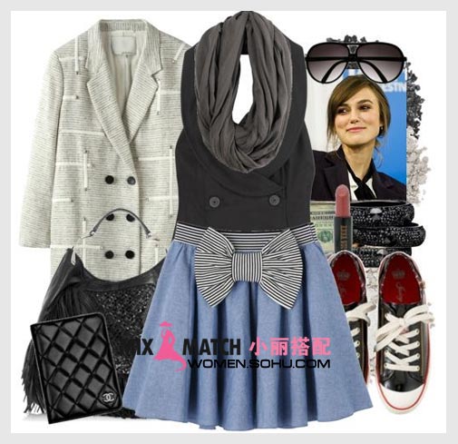 搭配解析:灰色长针织薄衫,现在穿整合式,时髦好看还不会觉得厚重。星图案装饰平底鞋倍显甜美可爱。珍珠配饰稍显“富贵”。