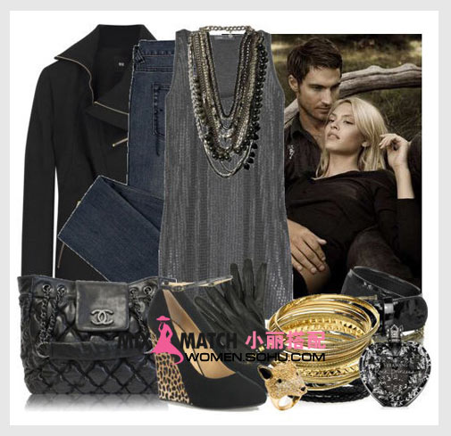搭配解析:灰色无袖亮片薄衫,低调同时很闪亮。下搭铅笔仔裤再好不过了。黑色豹纹底高跟鞋,展露脚下的一丝诱惑。民族风配饰更添神秘韵味。