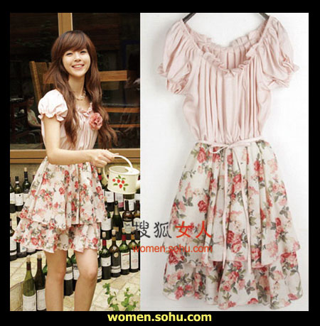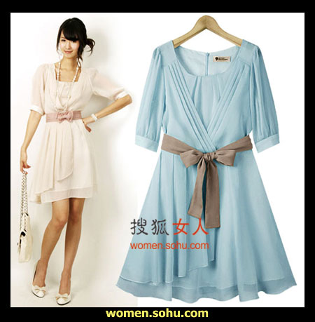 时尚解析:半袖雪纺连衣裙非常适合本季穿着,淡淡的粉色与飘逸的雪纺搭配,甜美可人,腰间蝴蝶结增添可爱气息。