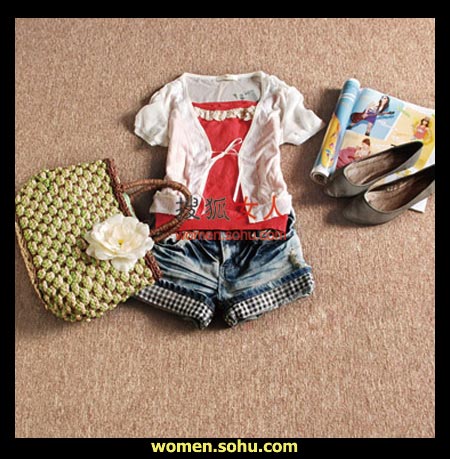 时尚解析:红色打底小吊带配白色针织中袖外套,天气凉了,实用又时尚。搭配小短裤简单清爽,甜美度瞬间提升100%。