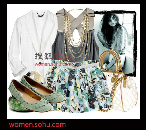时尚解析:带有碎花装饰的雪纺半身裙可爱俏皮,为了不让整体感觉变繁琐,不妨选择不张扬的素色上衣,大方得体,收到同事朋友的称赞。