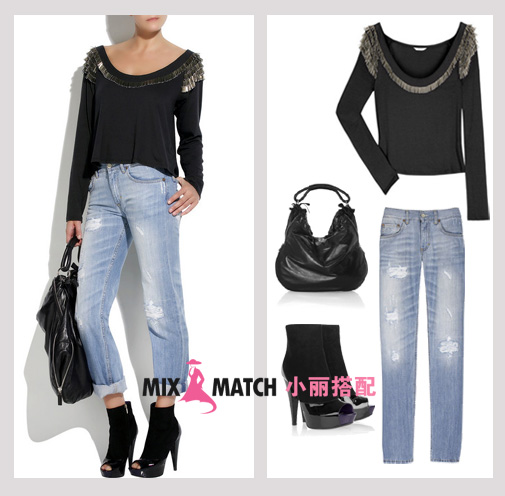 时尚解析:巧动心思,简单铆钉装饰的T恤搭配浅色仔裤,穿出与众不同的美,秋日修身T恤搭配简洁而时尚,奢华而低调,将夸张的流行元素与现代生活相融合,打造富有张扬个性魅力的时尚感,简单的穿搭,只要花点心思你也可以非常有创意。
