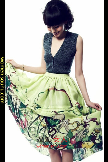 时尚解析:绿色的花花裙颜色独特,是今秋很流行的一种颜色,搭配针织衫拥有别样迷人的效果,高腰的设计让你的身段表现更完美!