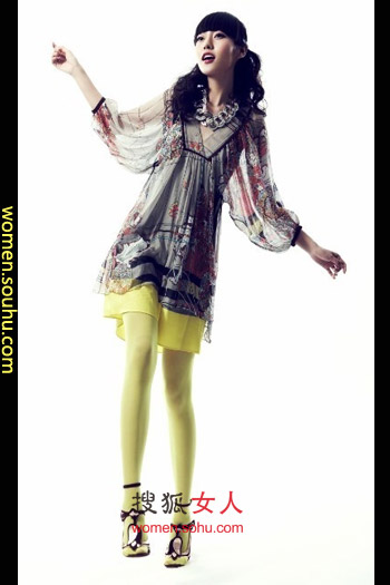 时尚解析:如果你厌倦了整天都是粉红色、白色的连衣裙,那么这条特别的灰色与黄色混搭裙就可以带给你足够的新鲜感,脖子上佩带的项链让你的搭配更有看点哦。