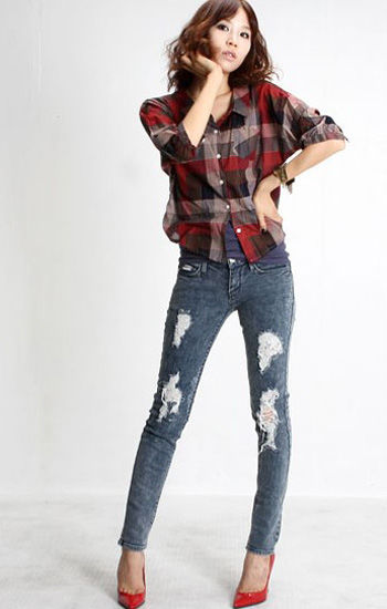 紧身的铅笔牛仔裤,这样的百搭款,在秋天到来之际,更应该是衣橱的必备款,水洗磨破的仿旧设计是这两年一直大热的流行元素。