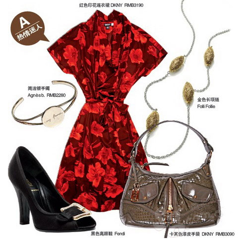 搭配建议:充满女人味的着装往往给人亲和的印象,无形之中便可减少社交过程中的距离感。绚丽的印花图案、飘逸的雪纺质地、柔美的设计线条,都让你散发出迷人味道,对社交场合的周遭产生强大磁场,让人轻易卸下心防,禁不住想与你沟通,甚至成为朋友。