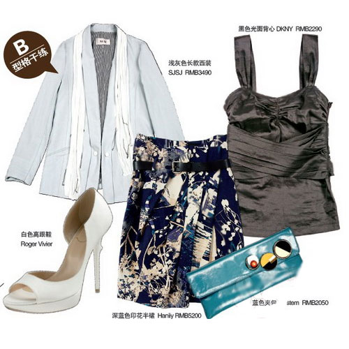 搭配建议:如果你整日周旋于时尚行业、媒体圈或者是广告界,那么对着装的要求可不止是得体这么简单,时尚度绝对要更UP一点,才能让别人注意到你的存在。如果设计再有点特别,吸引到对方开始与你从工作的沟通过渡到讨论着装话题,那就要恭喜你,这套社交装已经成功帮你攻下第一道防线,社交女王的道路从此展开。