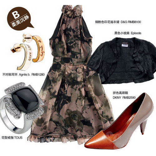 搭配建议:处处都闪动着印花裙的身影,不得不承认,它太火了,令我们不由自主的都要推荐这类单品。搭配小披肩,增添稳重气质,在社交场合为自身加分不少。钻饰不需要太多夸张,就算设计再简单,再不起眼,独特的魅力和光芒照样穿透你的目光。