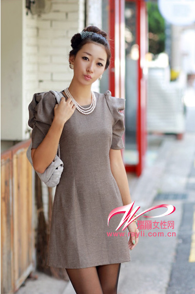 可爱的泡泡袖总给人一种俏丽的感觉,素雅的咖色让你更显高贵!