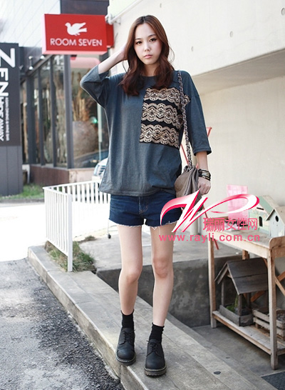 宽大的蕾丝花边图案,吸引眼球。图案偏向一侧,略带渐变色色调,魅力十足。中袖圆领T恤,款式比较宽松,穿着舒适!