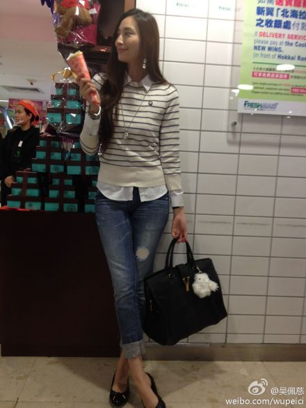 吴佩慈条纹衫搭配牛仔裤