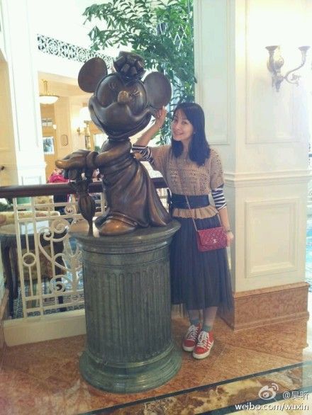吴昕(微博)镂空罩衫+蕾丝长裙+chanel挎包+运动鞋=爱着米老鼠的可爱吴昕