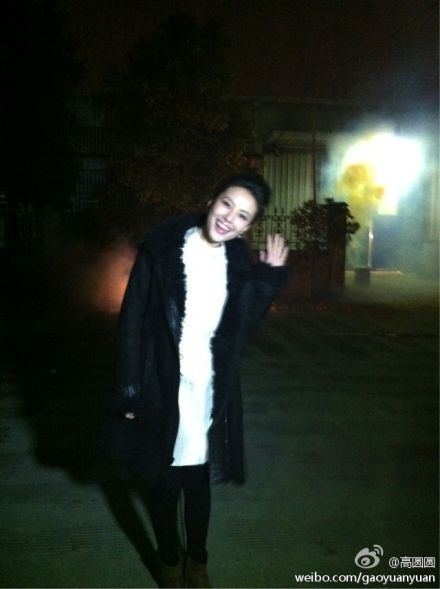 高圆圆(微博)刚结束工作的高圆圆就通过微博向大家打招呼,黑白的搭配很经典。