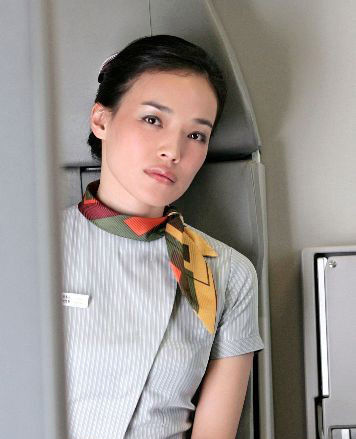 金喜善在《窈窕淑女》里的剧照一暴光,马上就媒体说她是继松岛菜菜子的《大和拜金女》之后,史上最“索”的空姐,金喜善不愧为韩国第一美女,金喜善的空姐造型端庄优雅。