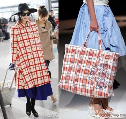 范冰冰大衣和LV风靡一时的编织袋十分神似
