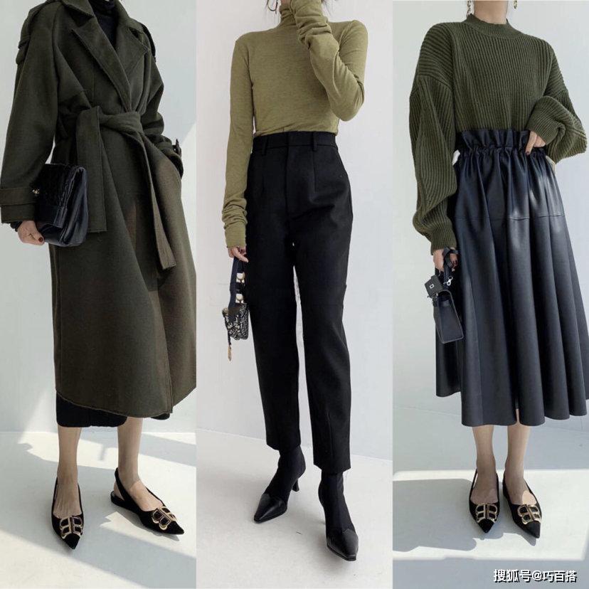 想要穿出得体又出彩,职场老人还可以通过新鲜的色彩来增加造型亮点。而今天种草的这种look,就选择了复古风必备的暗绿色系与黑色碰撞,上身气质典雅又通勤,吸睛效果显著。
