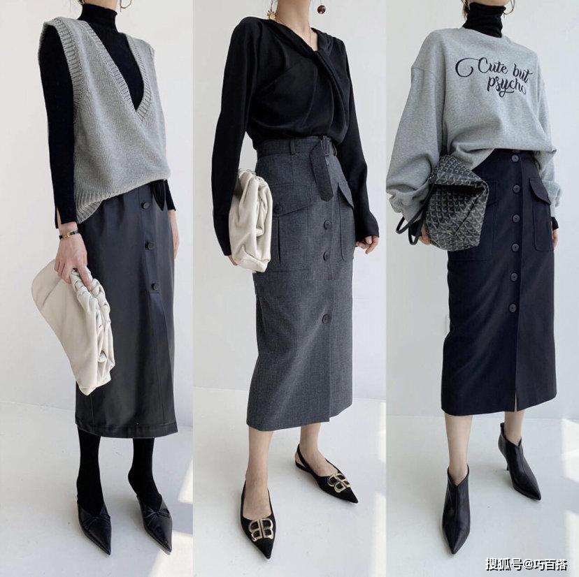 对于上班族来说,秋冬衣橱必备的单品需要get一下。首先我们来看一下这组look中的铅笔裙,这种笔直的裙型,搭配上高腰短打的穿法,轻松就能打造出大长腿的既视感,利落又不失气场。而且略修身的版型,还能包裹出下半身曲线美,更添优雅轻熟的韵味。